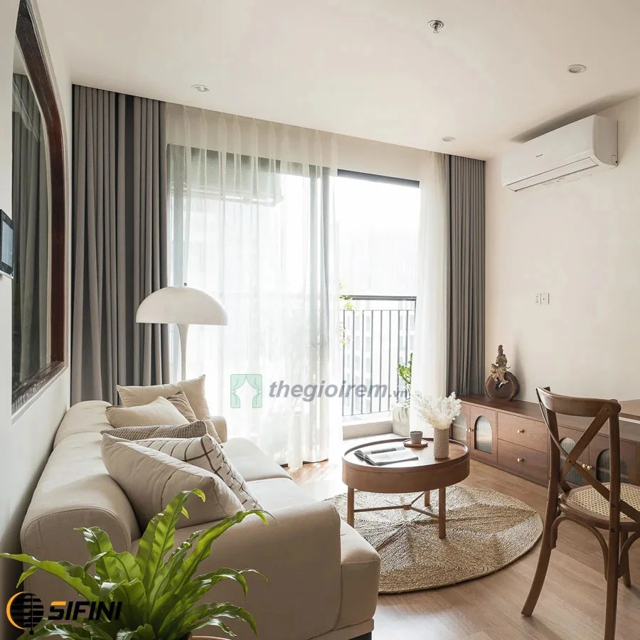 Rèm phòng khách đơn giản 1 lớp vải xám chống nắng tốt