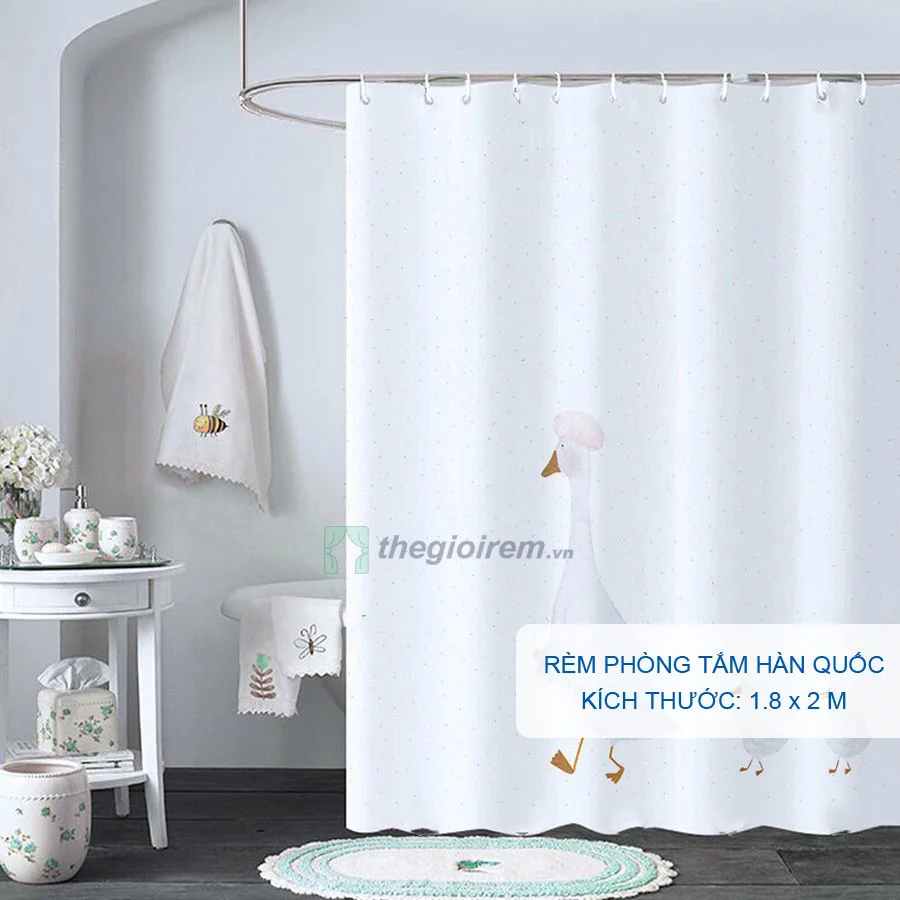 Không chỉ mang tính chất bảo vệ, rèm nhà tắm còn mang lại một hình ảnh đẹp mắt cho căn phòng. Bạn có thể lựa chọn từ các mẫu rèm có hình con vịt dễ thương hay các hoạ tiết và màu sắc phong phú để tạo điểm nhấn cho không gian nhà tắm của bạn.