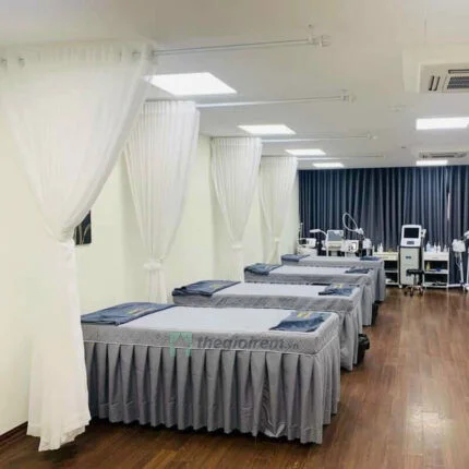 Vải voan trắng may rèm trang trí Spa làm đẹp